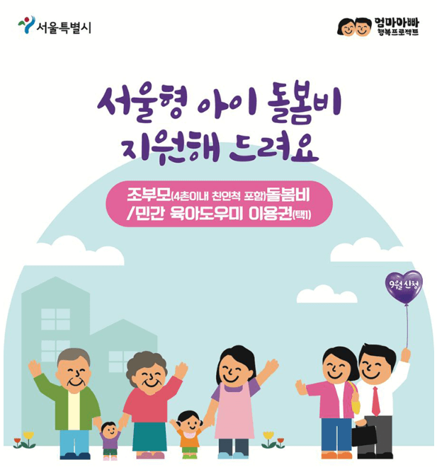▶신청대상 : 서울거주 만24개월 ~ 36개월 영아가 있고 기준 중위소득 150%이하의 양육공백이 있는 가정